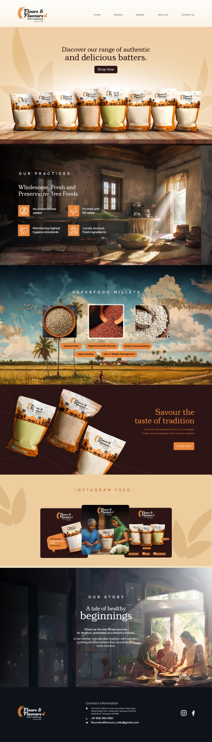 Bringing South Indian authenticity to the forefront, we developed a brand identity for Authentic Eats & Flours and Flavours that captures tradition and quality. From a functional yet engaging website to social media storytelling, we ensured the brand’s essence was visible across all platforms. With vibrant visuals, food-focused content and branding that evokes nostalgia, we helped establish them as a trusted household name for authentic flavors.